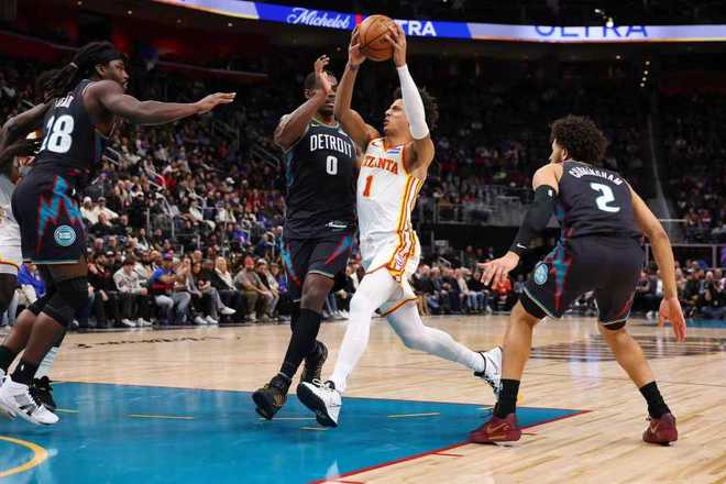 中场休息回来,双方进攻火力进一步下滑,活塞无缘连续三节得到25分,且限制老鹰本场首次单节得分不足20分。杰伦第三节出战9分钟7中5,一人轰下13分2篮板1助攻,其余老鹰球员第三节合计只有6分。活塞单节24-19净胜5分,三节结束活塞扩大74-68领先老鹰6分。前三节比赛,活塞三分仅20中5,杜伦18+8与坎宁安10+8+7,引领活塞4人得分上双,老鹰三分28中8,杰伦17+10与奥孔古20+4+4,引领老鹰3人得分上双。